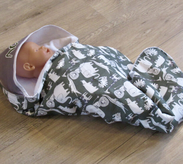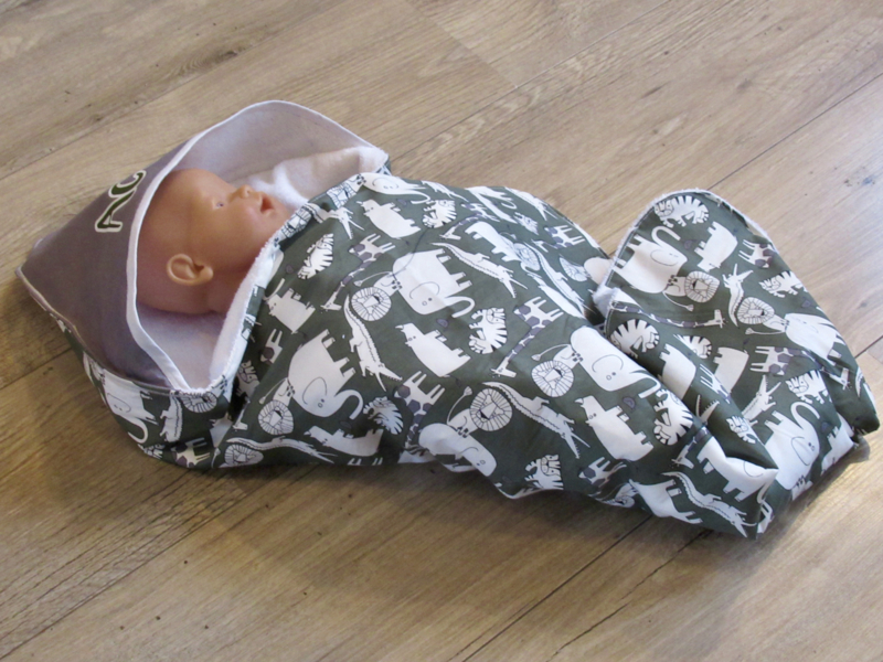 De cape is 75x75 cm. wasbaar tot 60 graden.