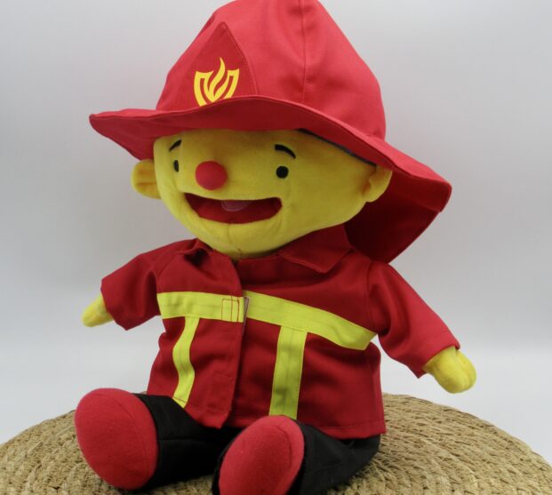 Een 3-delige kledingset: Het pak bestaat een een zwarte broek ( met extra naden zodat Puk goed kan zitten) en elastiek in band. Een rode jas met gele strepen, die sluit met klittenband op de voorkant en een stoere rode helm van stof met embleem. De set is wasbaar op 40 graden