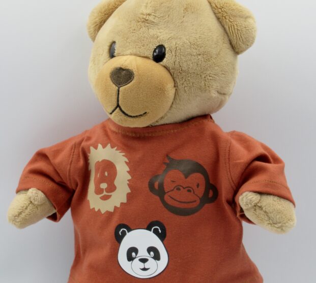 Dit shirt met opdrukken van een aap, een leeuw en een panda kan prima als alledaags shirt gedragen worden. Het past natuurlijk erg goed bij een thema over wilde dieren, denk bijv. aan de dierentuin. het shirt sluit met klittenband op de rug en is wasbaar op 40 graden. Excl. beer