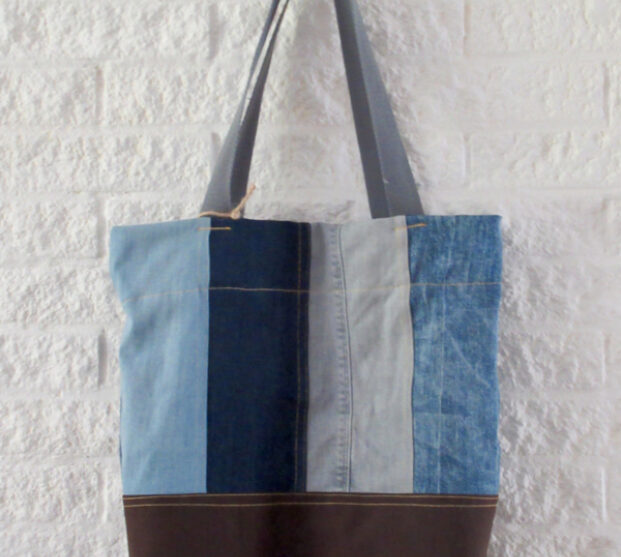 Zoek jij een duurzame tas, gemaakt van stoffen die een tweede kans verdienen? Deze leuke en unieke schoudertas ( ideaal voor boodschappen of een uitstapje) is gemaakt van stofjes uit oude spijkerbroeken en aangevuld met bruin katoen; 2de kans stof. Iedere tas die wij maken is uniek qua samenstelling van stoffen.