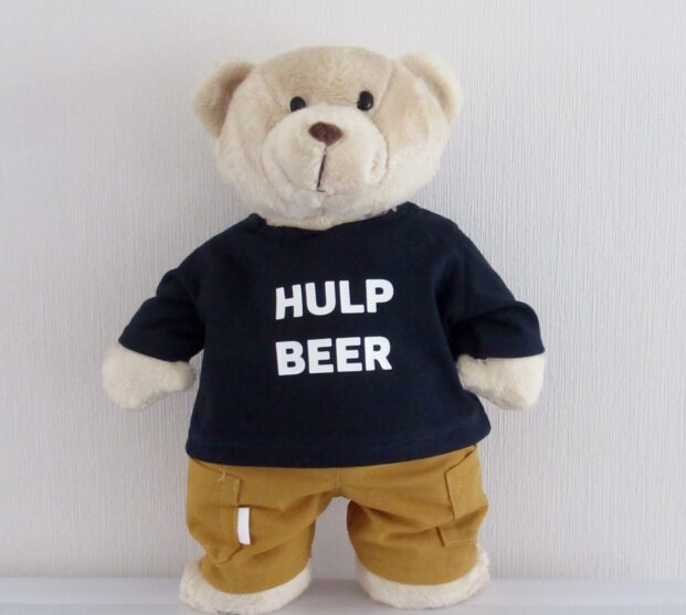 Kun jij een extra steuntje gebruiken van een vriend die altijd in de buurt is en die overal met je mee gaat? Bestel dan deze beer van 32 cm. ( in beige of bruin) met een trui / hoodie en stoere broek in een kleur naar keuze. Afhankelijk van de gekozen kleur, wordt de opdruk HULP BEER in het wit of zwart voor op de hoodie gedrukt.