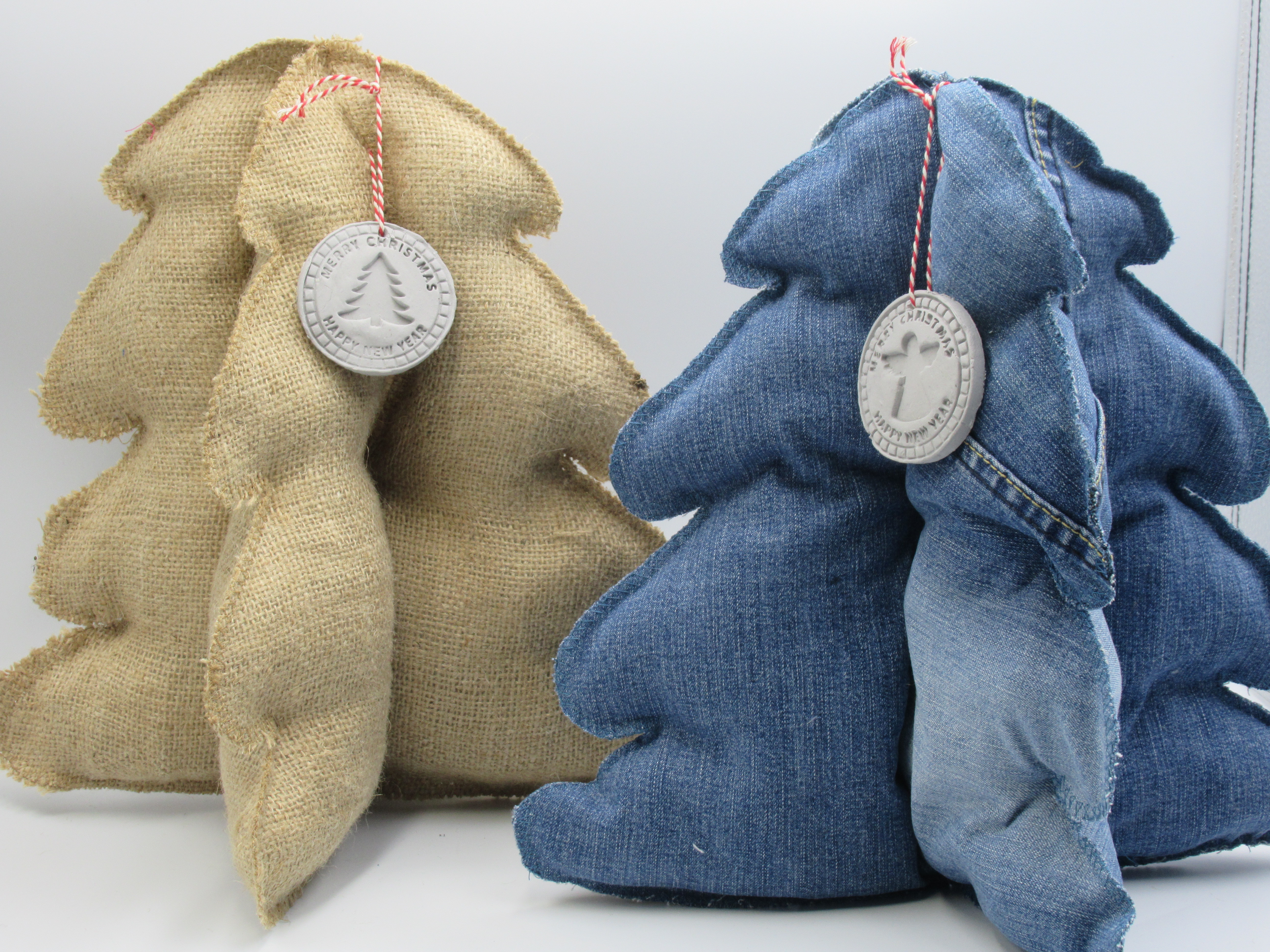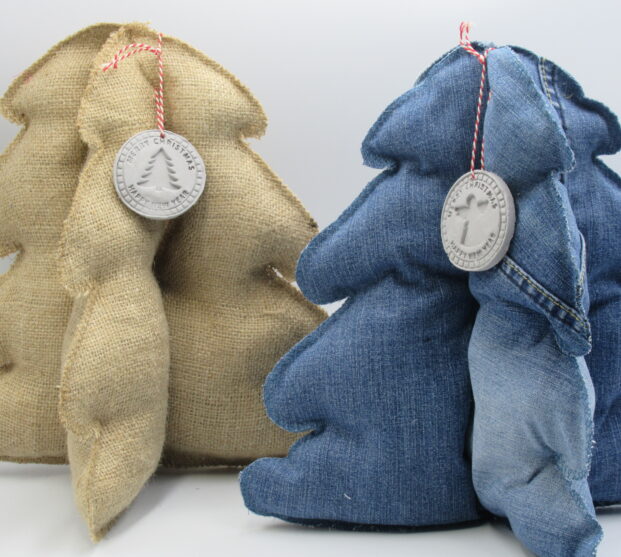 Kerstboom van jute of spijkerstof v. 30 cm hoog