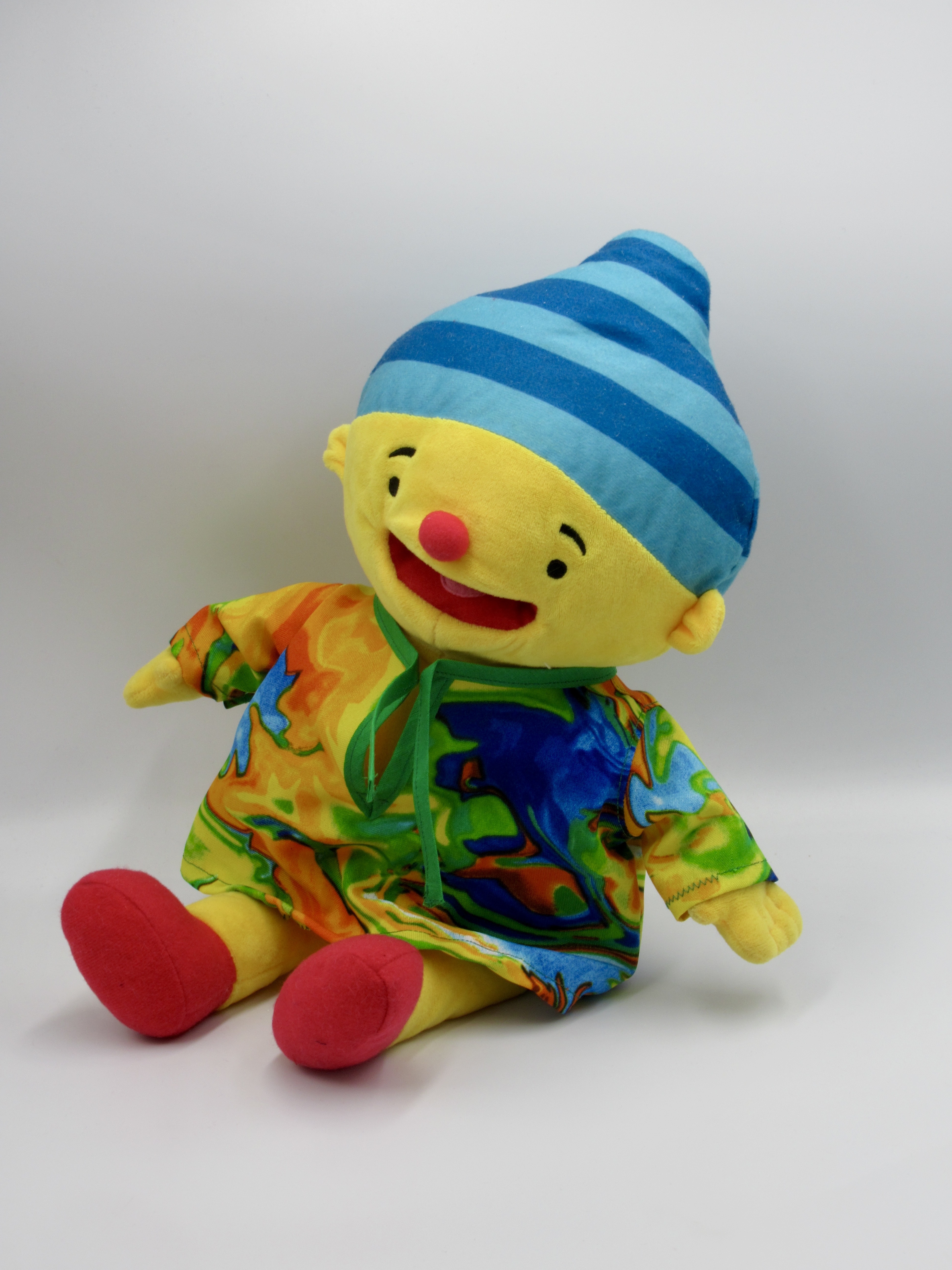 Een feestelijke en kleurrijke kiel/carnavalshes voor handpop Puk. De hes is wasbaar op 40 graden. Ook leuk te gebruiken bij het thema Kunst / Ik ben een kunstenaar.