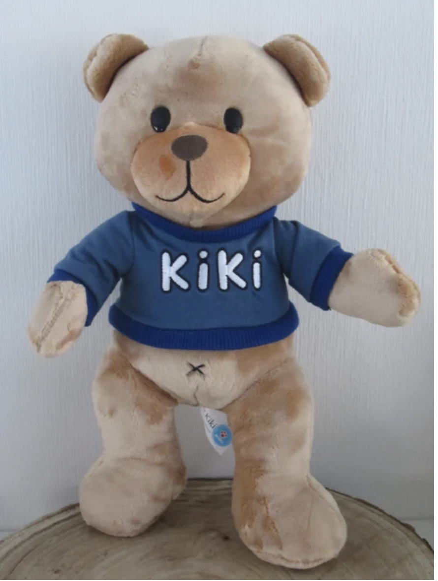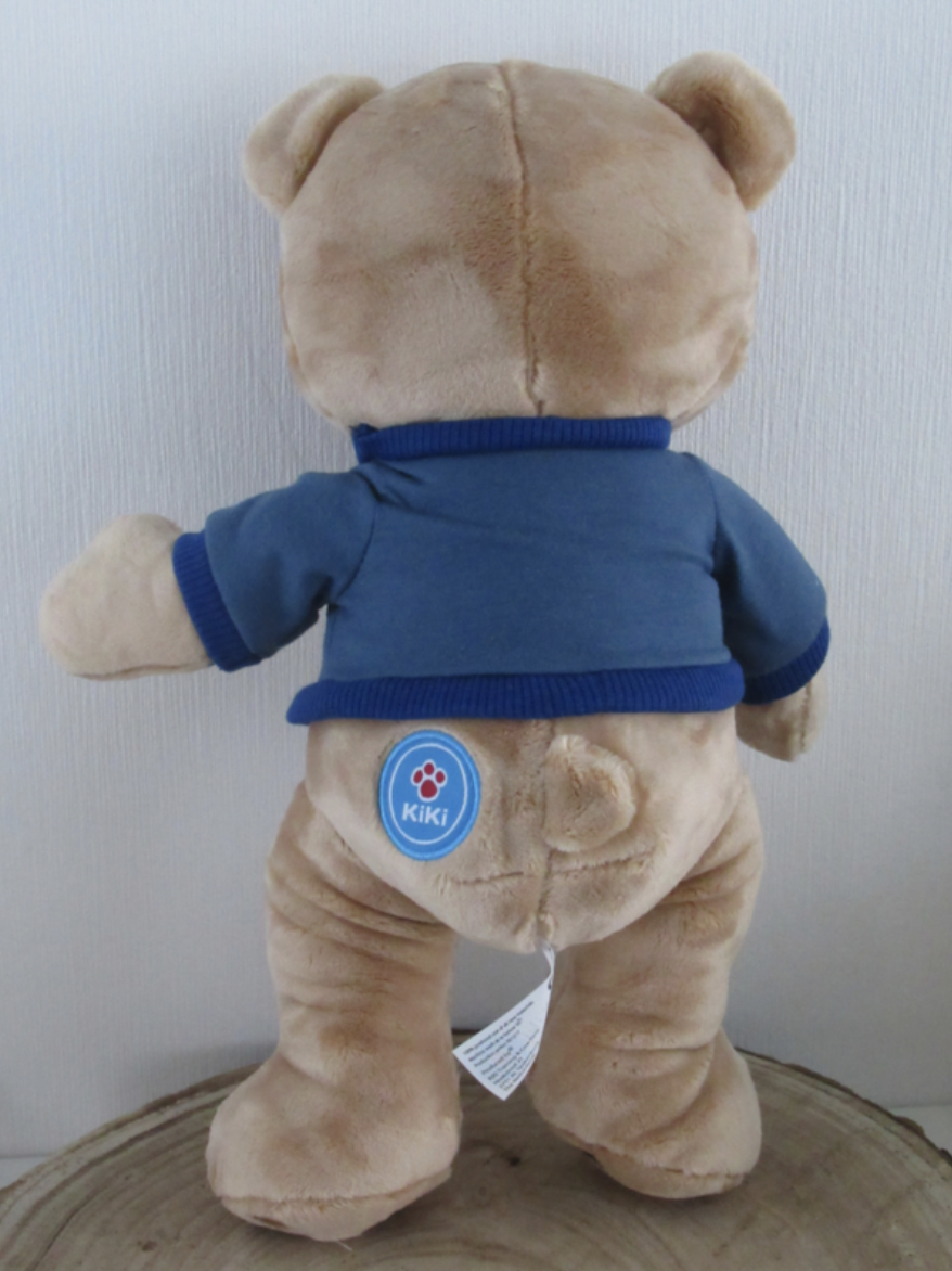 De beer heeft een shirtje aan wat aan- en uitgetrokken kan worden.