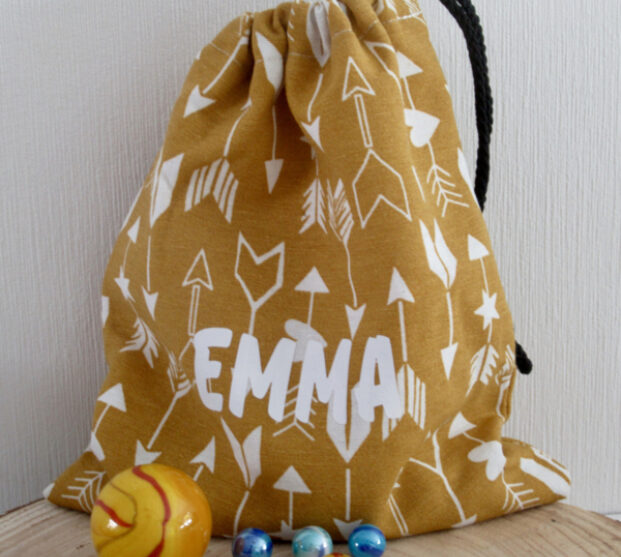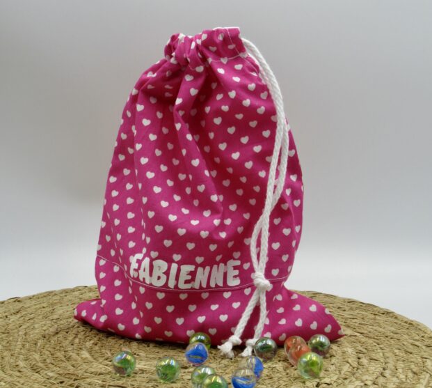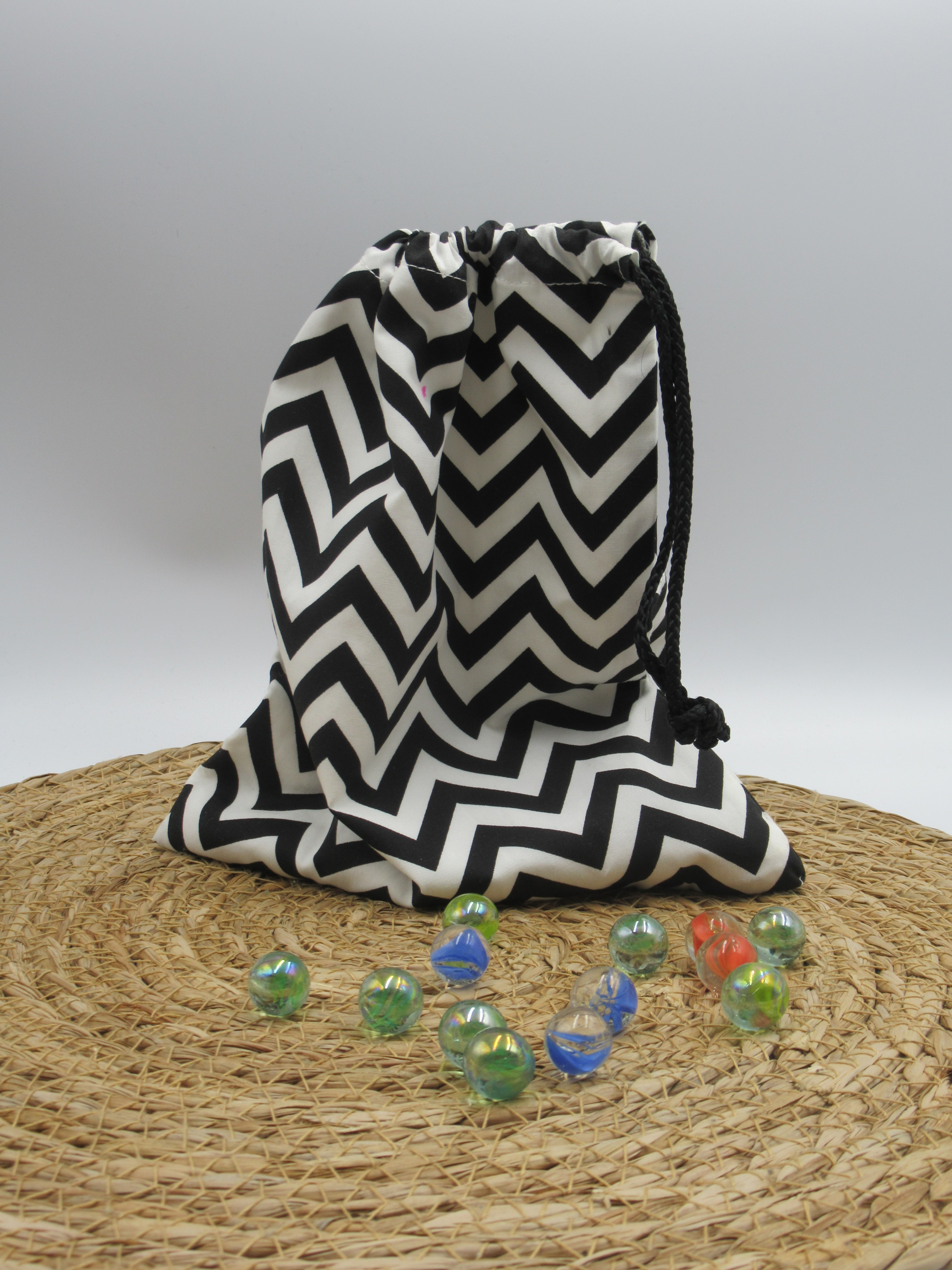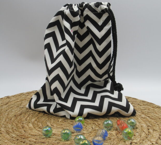 De maat van de zak is 21x27cm. De knikkerzak sluit met een koord en is wasbaar op 40 graden.