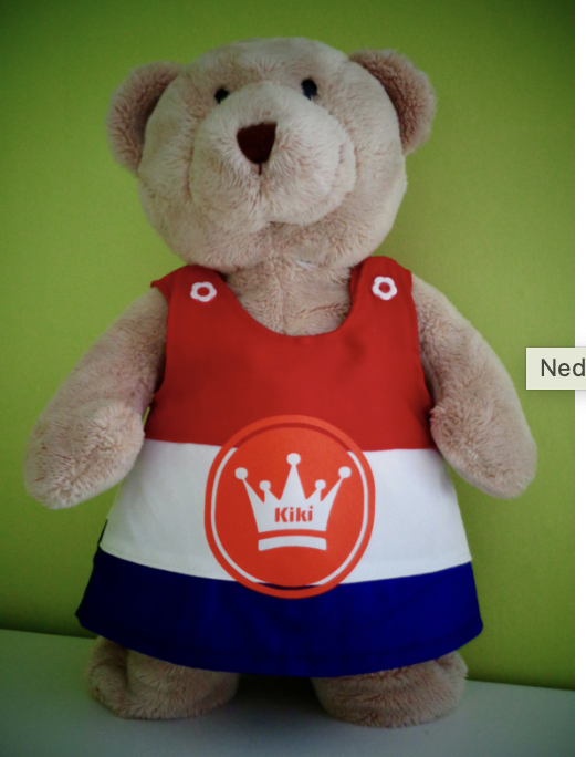 Deze kleurrijke jurk met rood, wit, blauw en oranje, is gebaseerd op der Nederlands vlag en past bij het thema koningsdag, Nederland en feest. het jurkje sluit met klittenband op de schouders en is wasbaar op 40 graden.