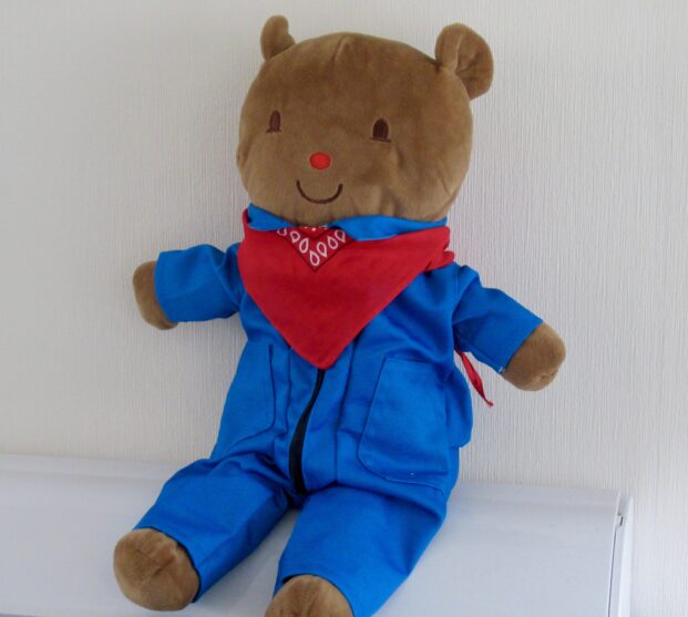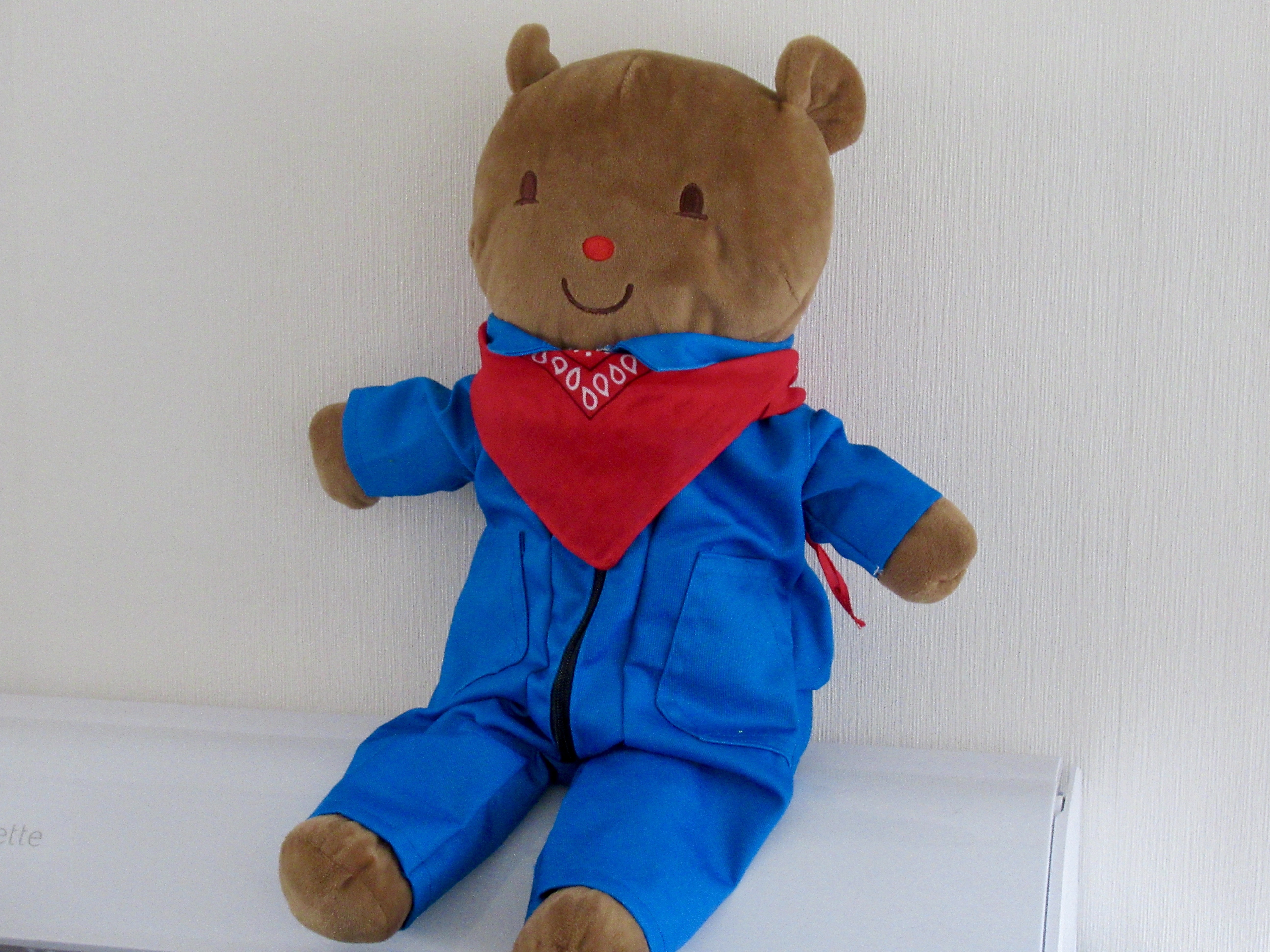 Deze overall met rits en steekzakken op de voorkant, maken wij in verschillende kleuren. De maat is geschikt voor handpop Bobbi van 42 cm hoog.