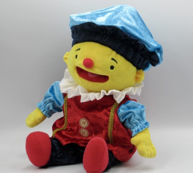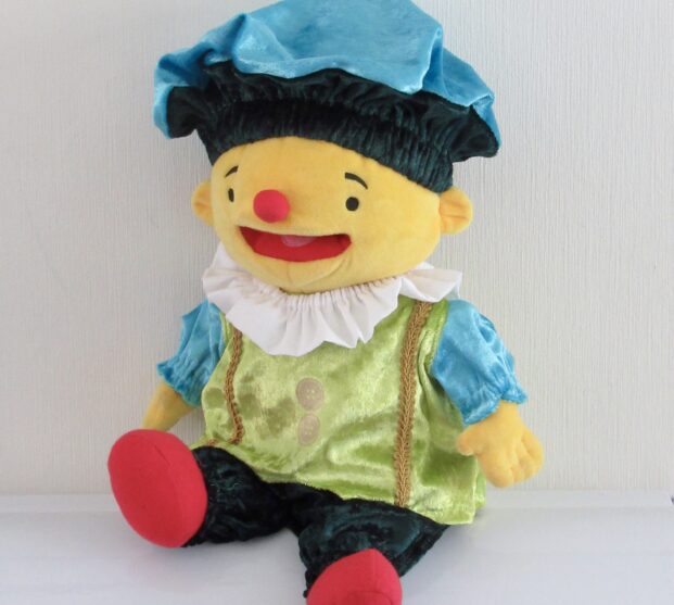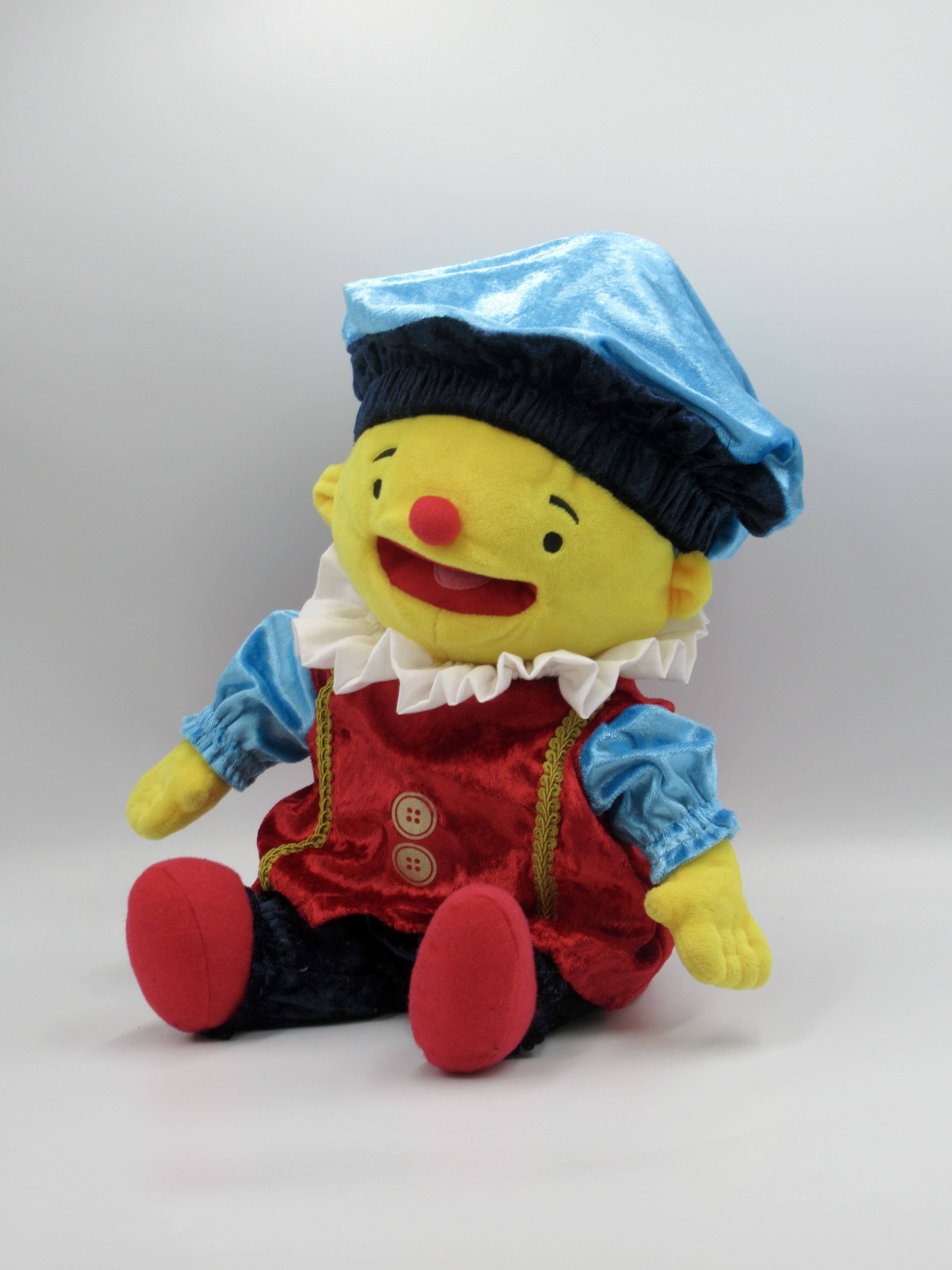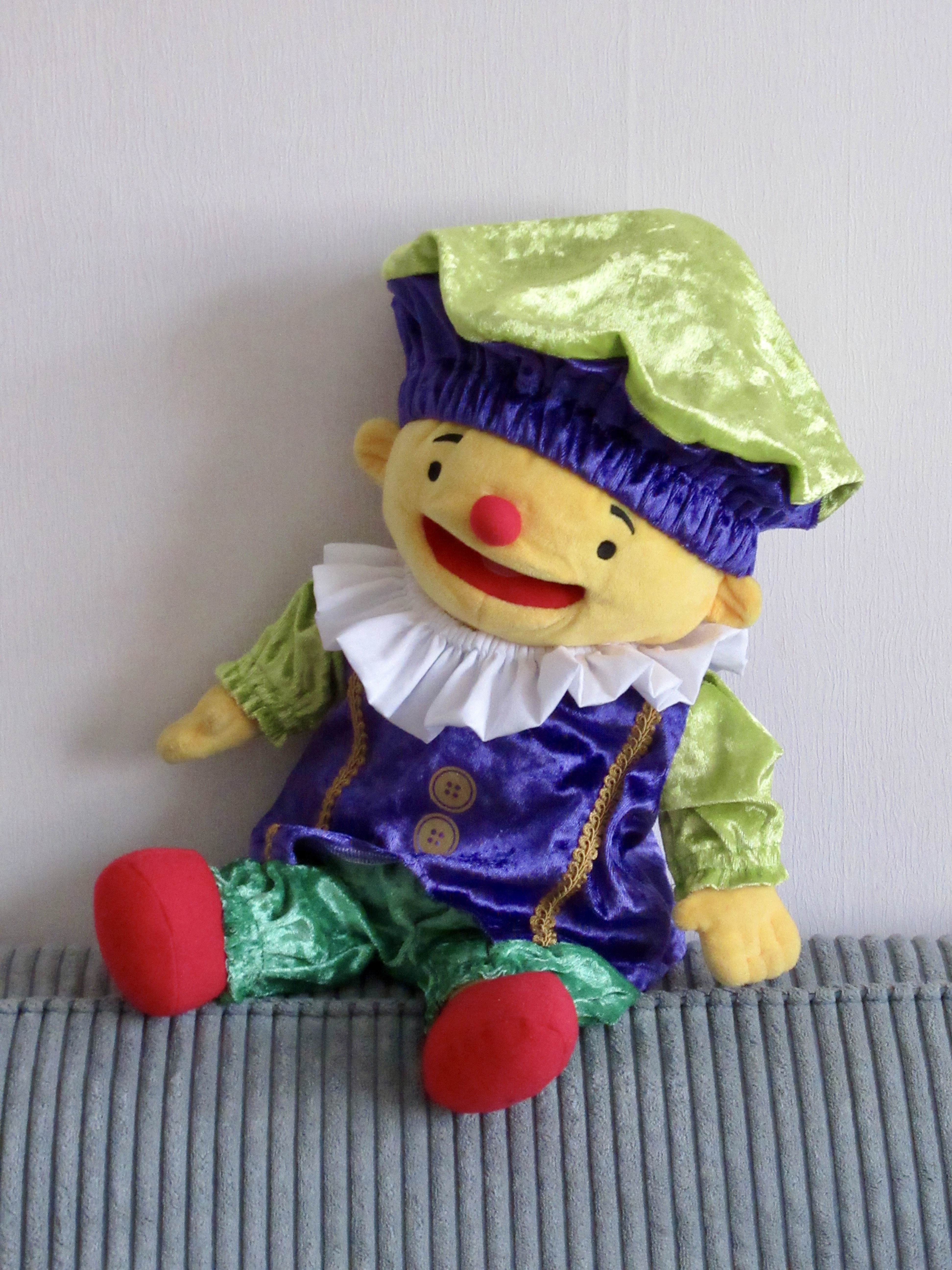 4-delige set: broek, hes, kraag en pietenmuts. De hes sluit met klittenband op de rug waardoor de handspeelfunctie gewoon gebruikt kan worden. In de broekspijpen en de mouwen zit elastiek verwerkt. Wasbaar op 40 graden.