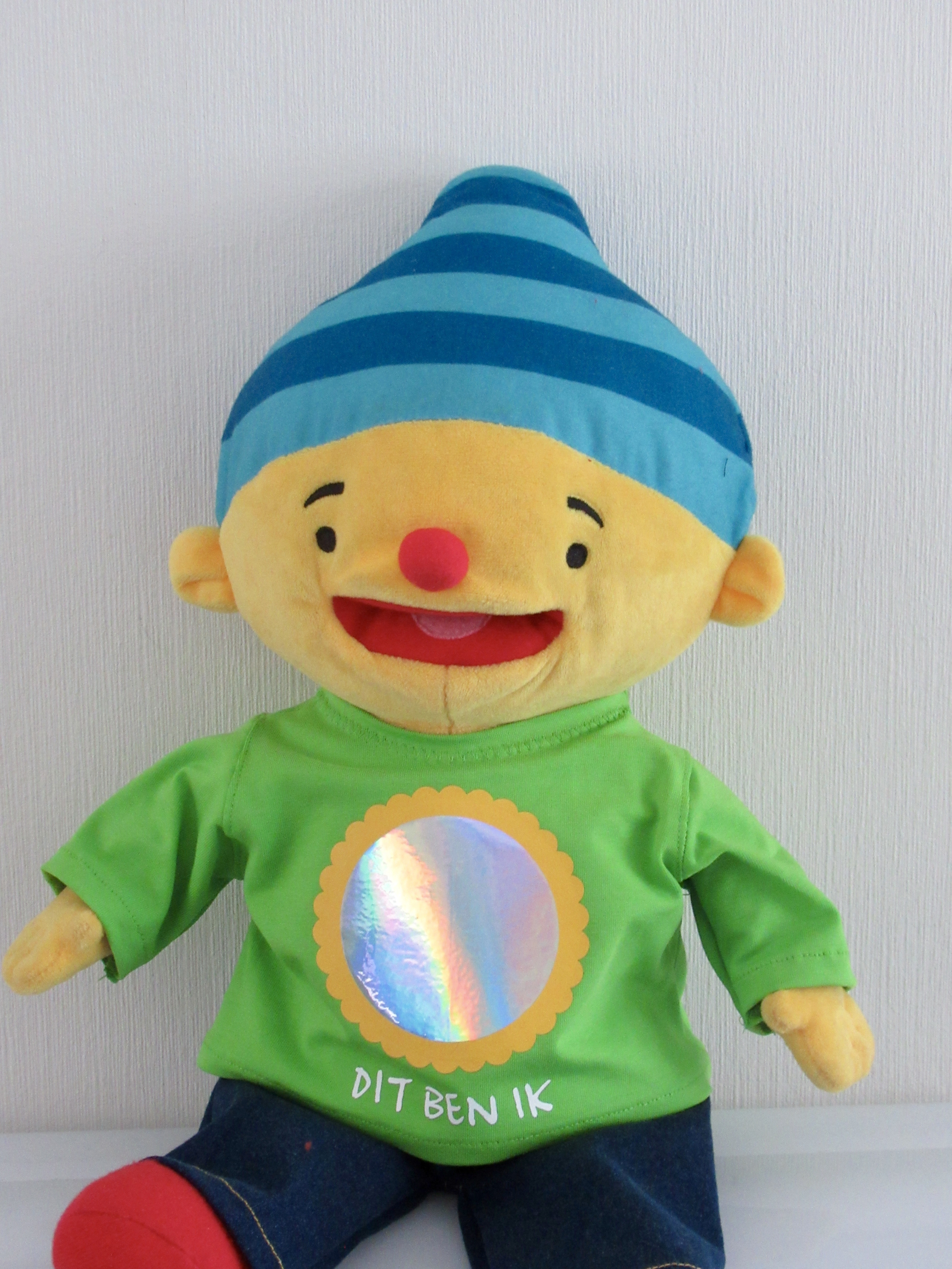 Dit leuke shirt voor handpop Puk heeft een opdruk van holygrafisch folie en past bij het thema "Dit ben ik". De opdruk lijkt een spiegel; al kun je jezelf niet echt zien. Het shirt sluit met klittenband op de rug.