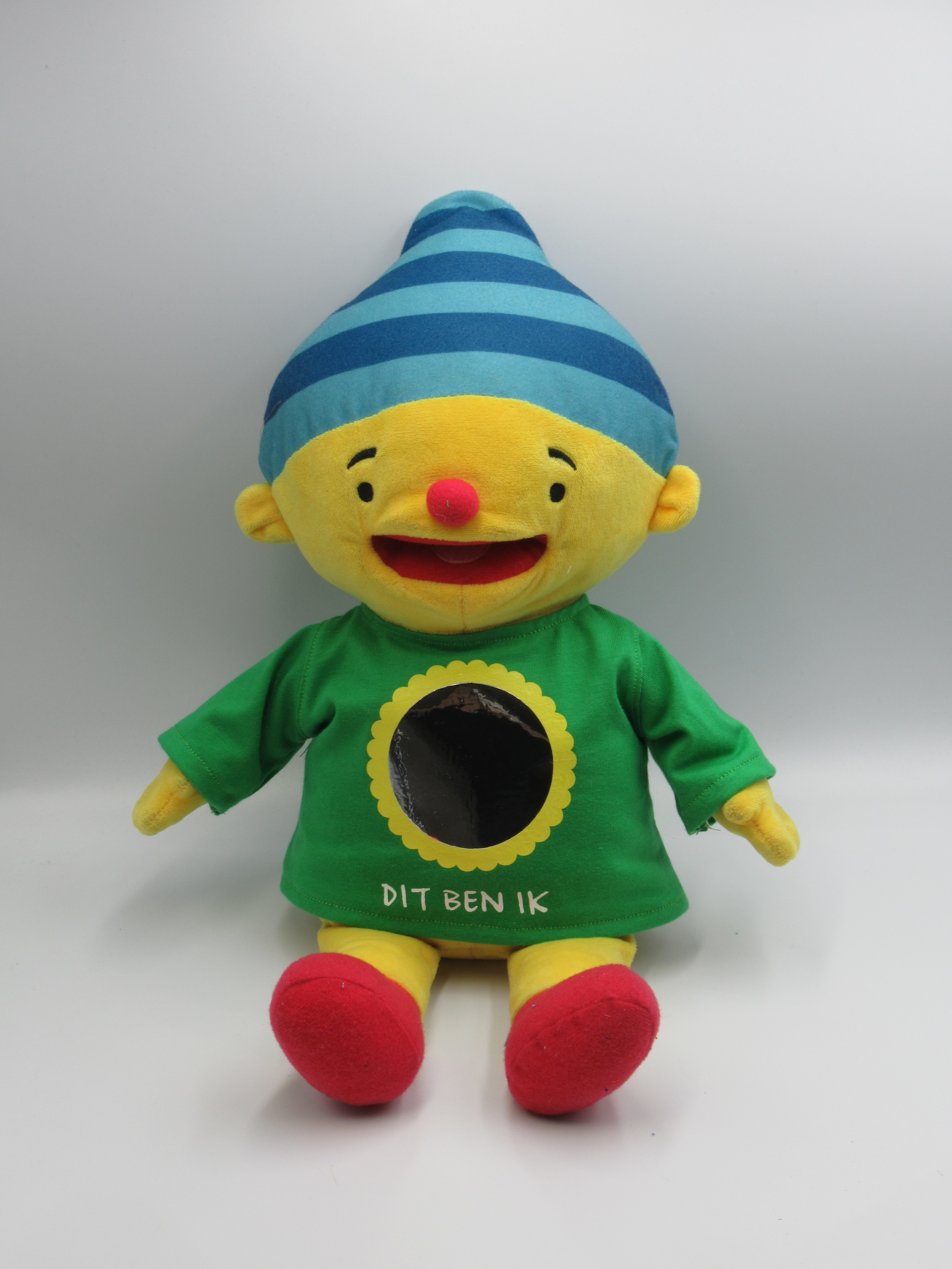 Wie ben ik en wie ben jij? Kijk in de spiegel op het shirt van handpop Puk.