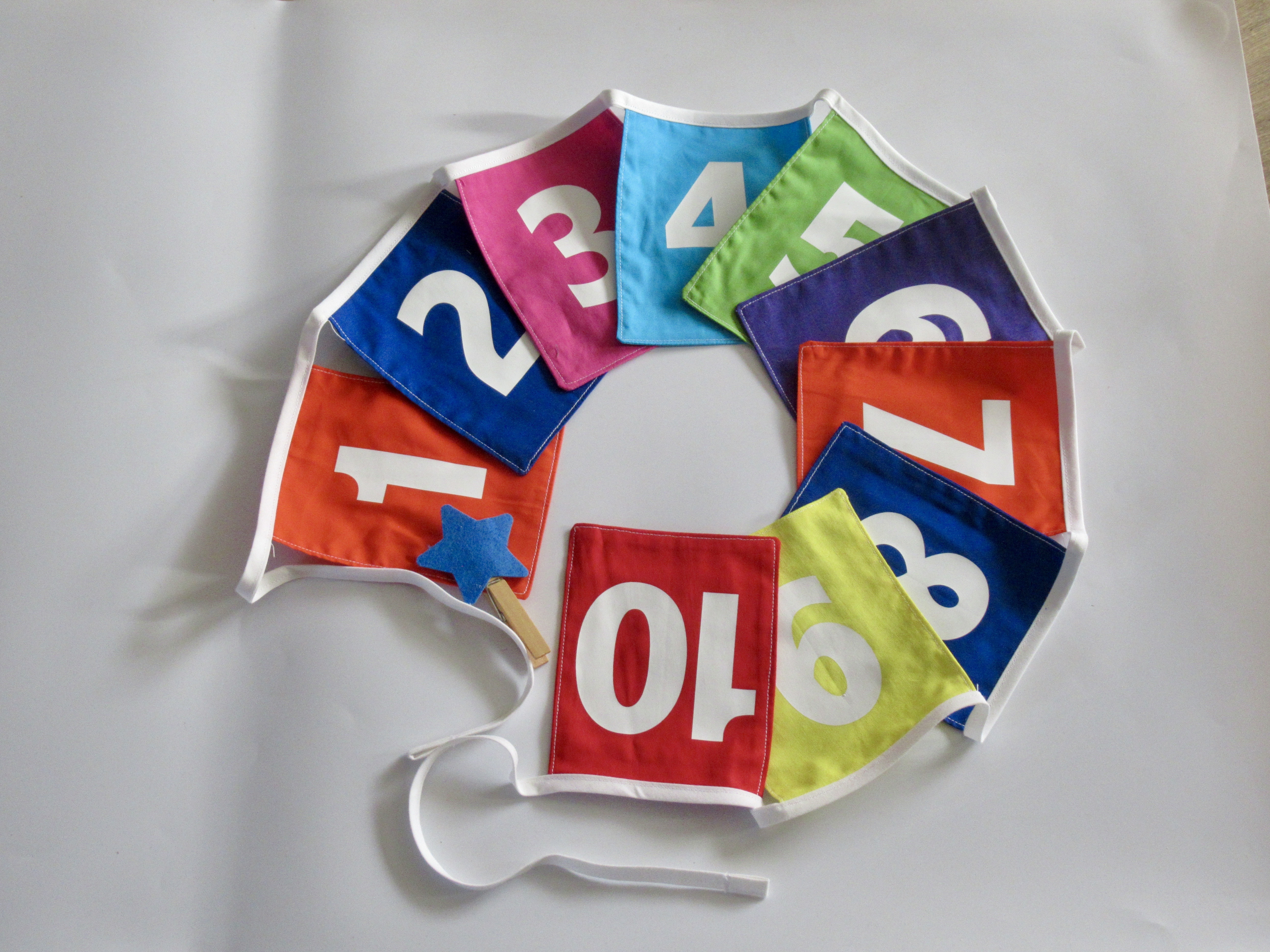 Deze lijn met vlaggen is ongeveer 2.10 m lang, heeft 10 vlaggen in verschillende kleuren met daarop aan 1 kant de cijfers 1 t/m 10 gedrukt.