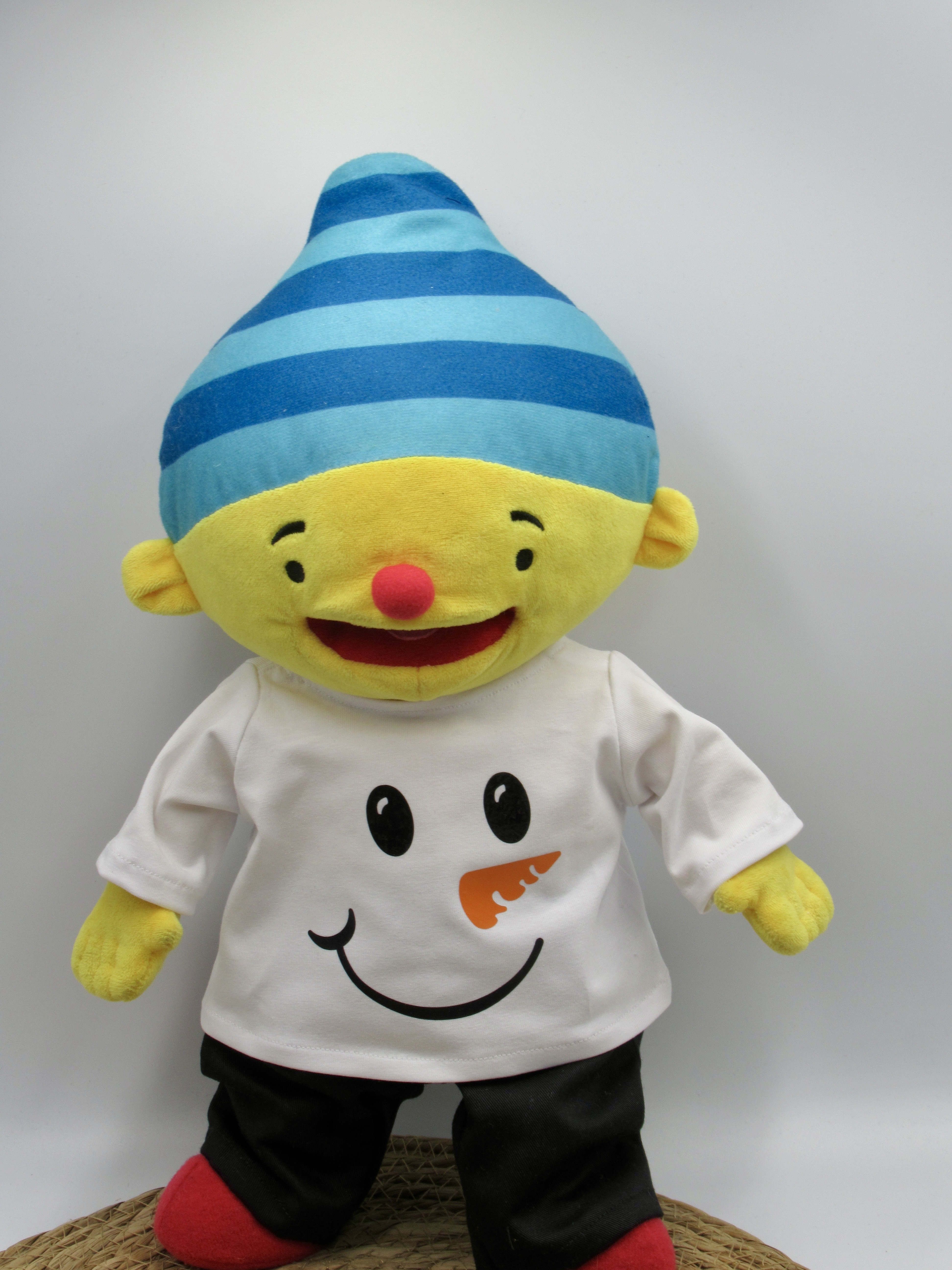 Het shirt heeft een klittenband sluiting op de rug zodat de handspeelfunctie gewoon gebruikt kan worden. Het gezicht van de sneeuwpop is op het shirt gedrukt. Het shirt is wasbaar op 40 graden. Bij het binnenstebuiten wassen blijft de opdruk mooi.