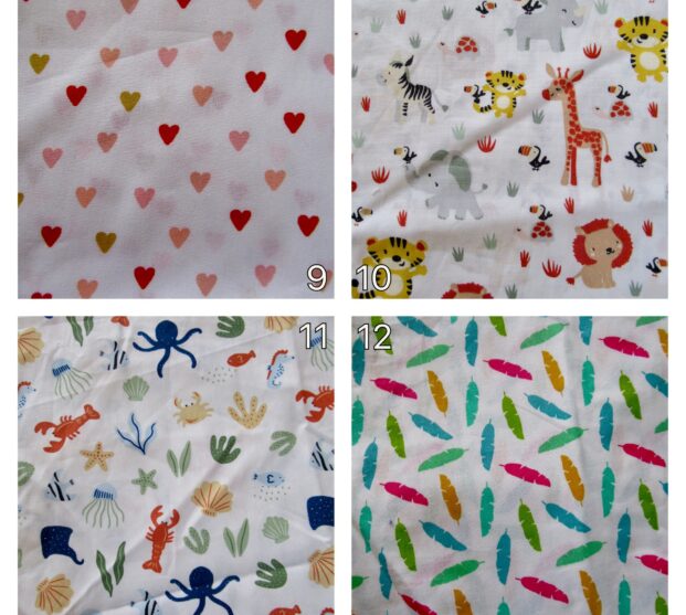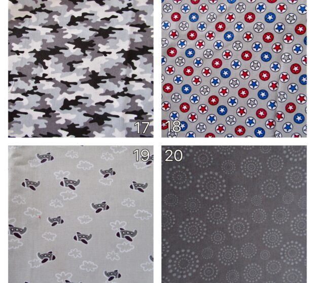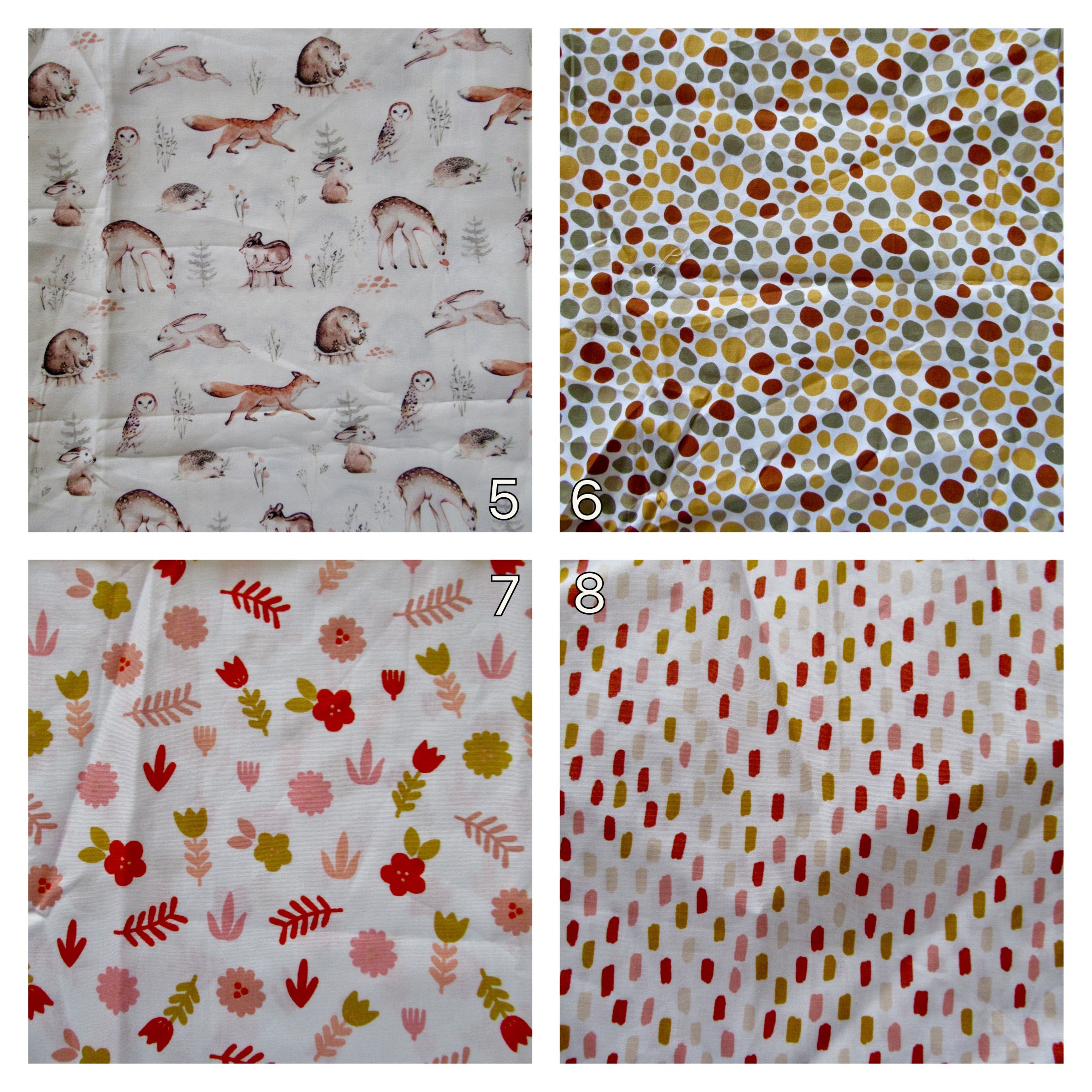 Kies je een stofje met print uit de bijgevoegde foto's en vermeld het nummer van de stof ( staat op de foto, rechts boven bij elke stof) bij je bestelling. Als je een stofje wilt die er niet tussen staat : mail naar info@stikselsenprints.nl de kleur van jouw keuze en of het voor een jongen of meisje is. Je ontvangt van ons een mail met foto's van de beschikbare stofjes waaruit je een keuze kunt maken.
