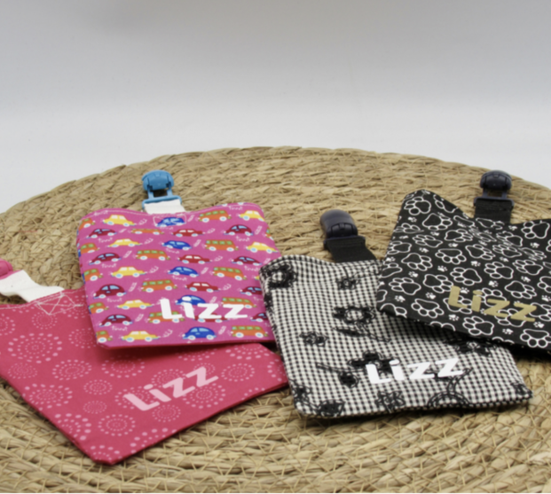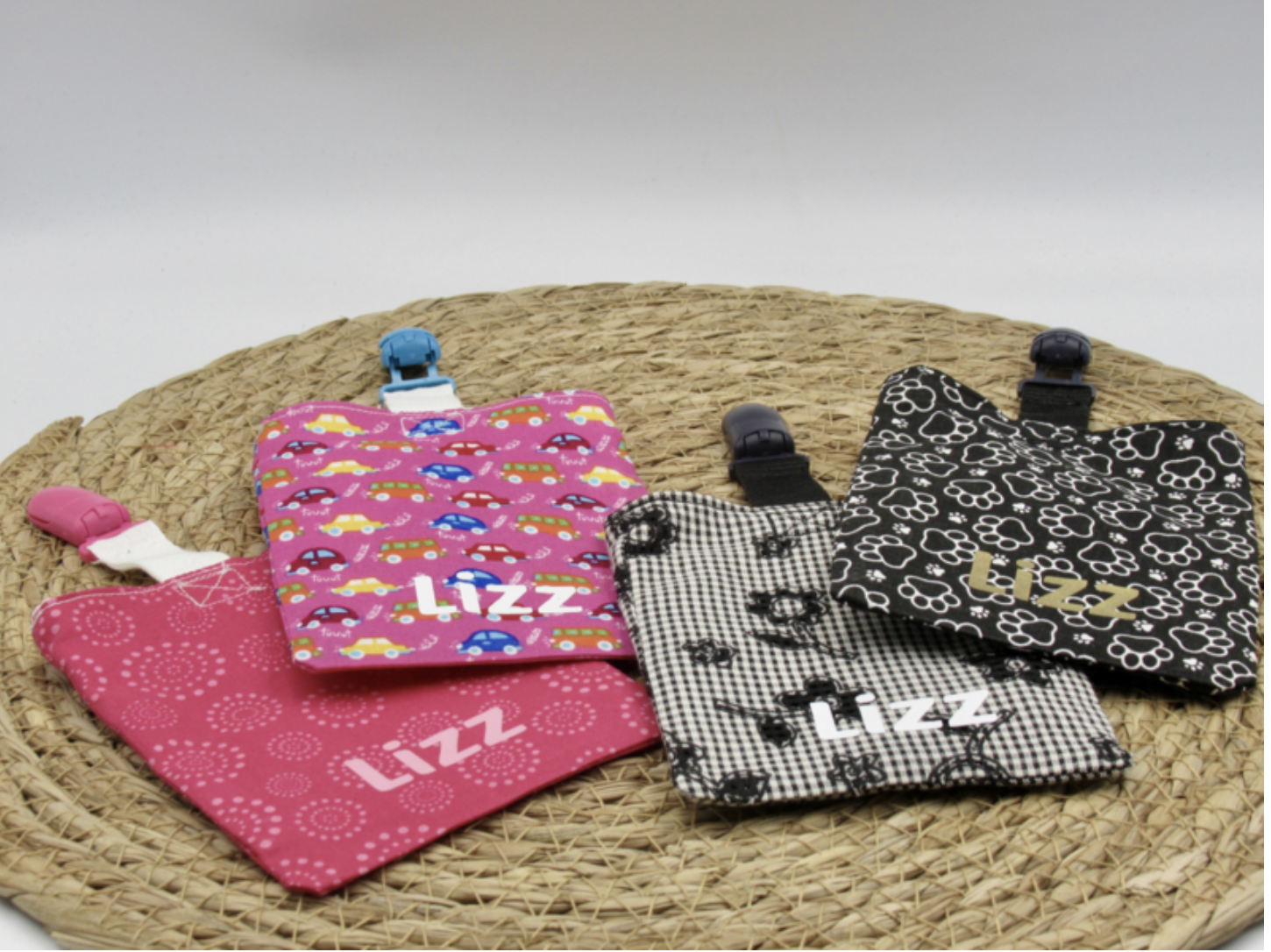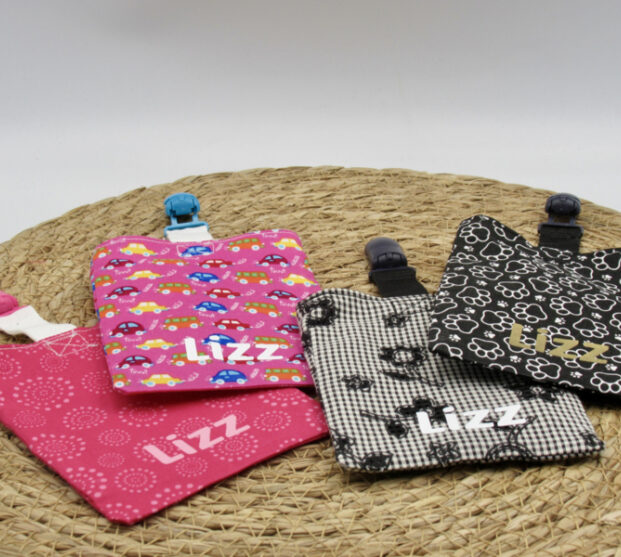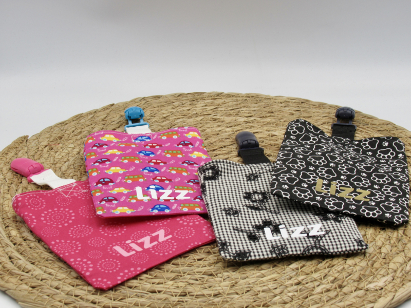 Voor de plastic clipjes kiezen wij een kleur die bij de stof past. Tot slot kun je er nog een naam op het zakje laten drukken in het mooie, vriendelijke en vrolijke lettertype Luna.