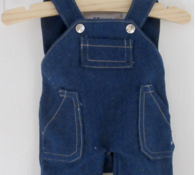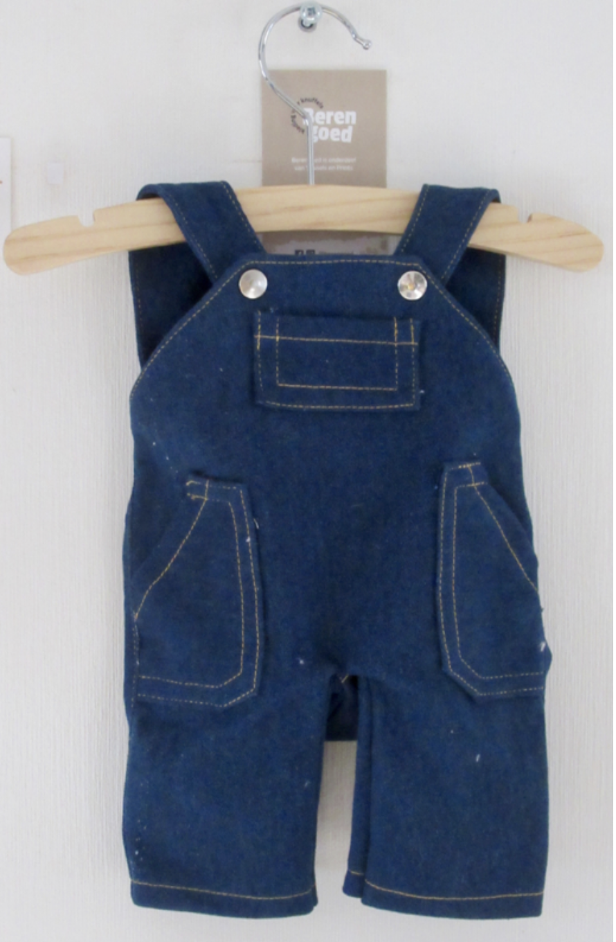 Ben jij op zoek naar een tuinbroek van stoere spijkerstof voor jouw handpop van 42 cm. hoog? Zoek dan niet verder: je hebt hem gevonden!