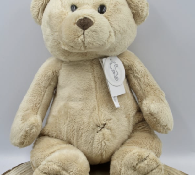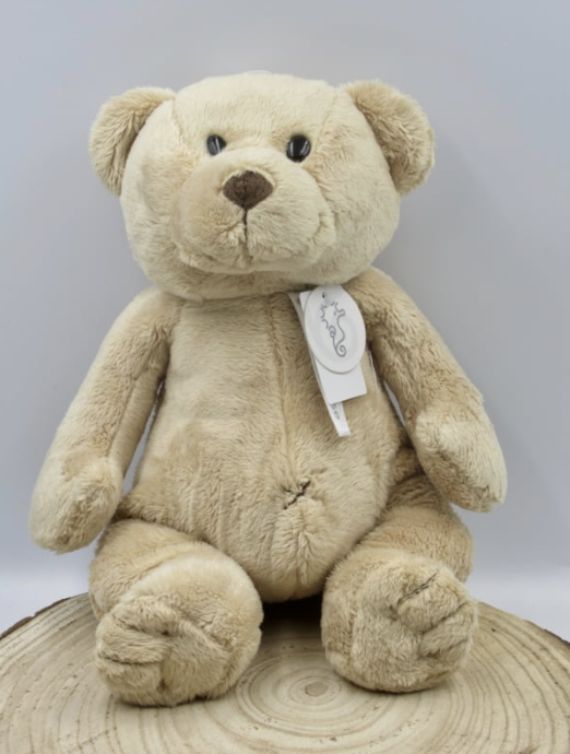 Zachte beer "Oude Kiki" van 32 cm. hoog in crème